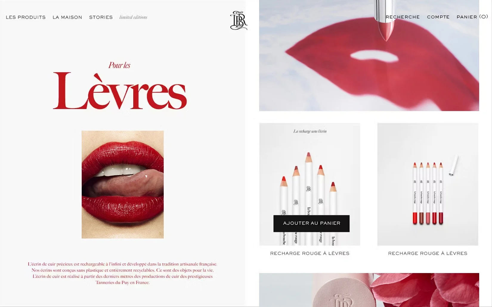 La bouche rouge — a luxury brand at the forefront of blue beauty and refillable products. From 2021 to 2023, I evolved from Designer to lead on 360° artistic and creative guidelines, ensuring continuity and coherence across all brand touchpoints.
