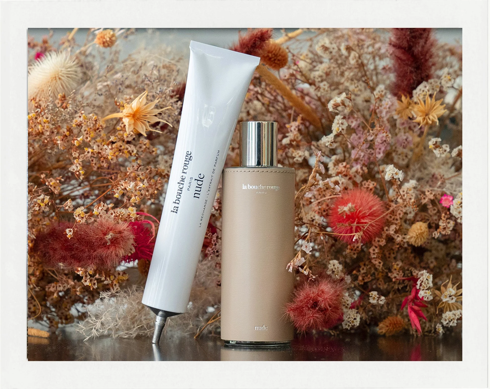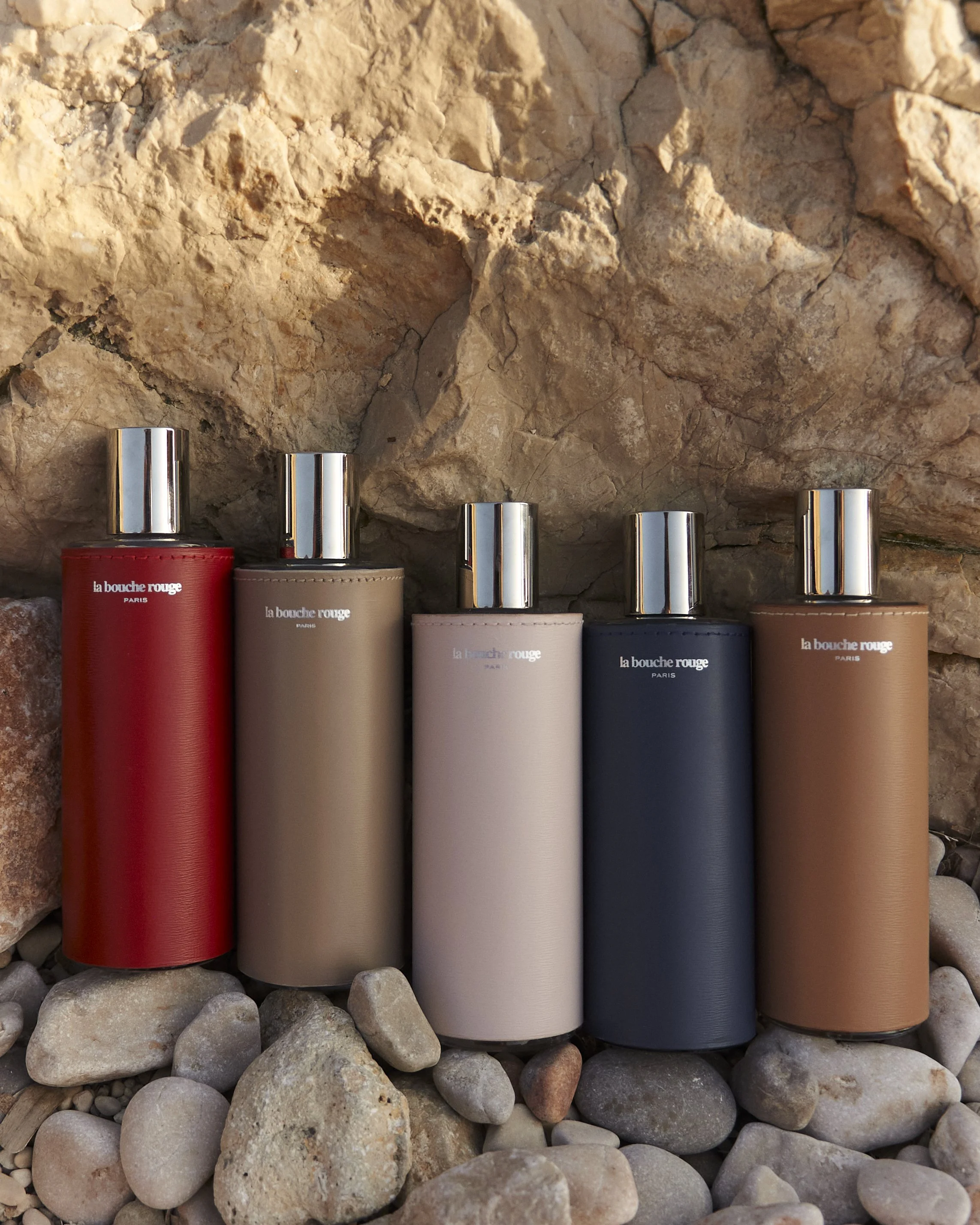 La Bouche Rouge reinvents perfumery with five creations — Rouge, Nude, Rose, Bleu and Ambre — crafted from natural and upcycled ingredients. Presented in refillable glass bottles with handcrafted leather cases and recyclable aluminum refills, these fragrances embody the union of luxury, innovation and sustainability.